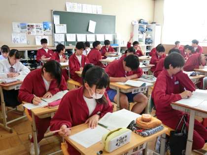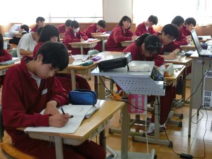 3年C組国語は、「握手」という小説の読み取りを行っています。