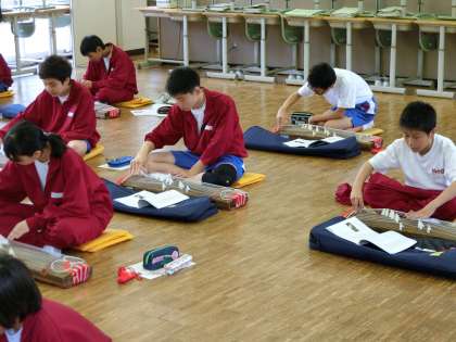 2年B組音楽は、「さくらさくら」の演奏曲を琴の音に合わせて、一生懸命練習しています。