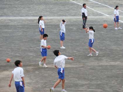 3年C組保体は、新体力テストの練習でボール投げに取り組んでいます。
