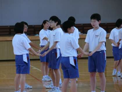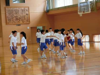 2年E組保体は、フォークダンスの練習です。