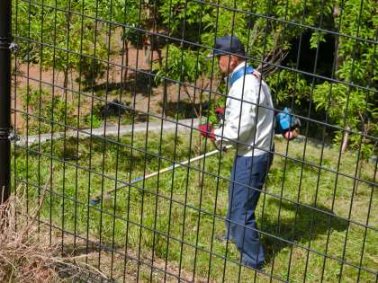 用務員の小早川さんは、草刈り機で体育館下の雑草が生い茂った面を、同じく長い時間をかけてきれいにしてくれました。