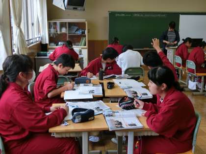 3年F組社会は、世界恐慌についてワークシートにまとめています。