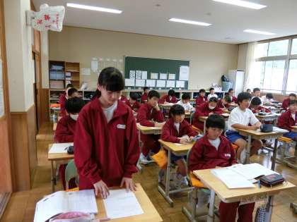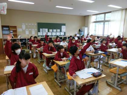 1年B組道徳でも、「いただきます」の想いに触れた資料を通し、考えを深めています。自分の考えを進んで発表しようとする人が増えています。