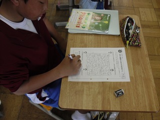 1年D組(英語)では、「be動詞の疑問文と否定文」について学習しています。迷路を進めながらみんな一生懸命考えていました。