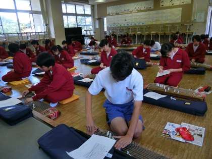 3年E組音楽は、「さくらさくら」の演奏を練習し、今日はテストを順番に受けています。
