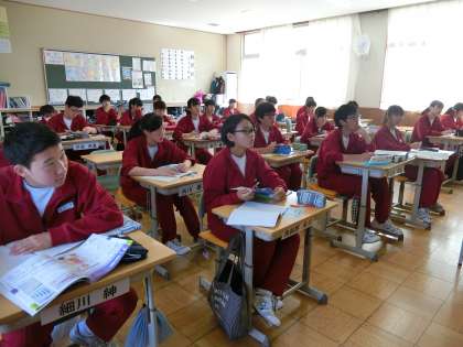 3年D組英語は、プログラム3−1の重要構文を理解しているところです。