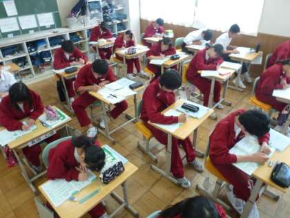 3Aは保体の授業で持久走をしていました。スタート前から緊張が伝わってきます。3Bは英語の授業でした。英語を使って数学の問題の解き方を解説していました。わかっていても説明できないもどかしさがありました。