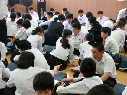 食事の説明のところでは、各班でお米や材料などの確認の打ち合わせを行いました。