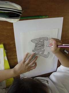 1A(美術)では、漢字1文字の中に、さらに文字を入れた絵文字をつくっていました。みなさん、それぞれ何という字が隠れているかわかるでしょうか?