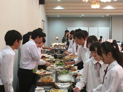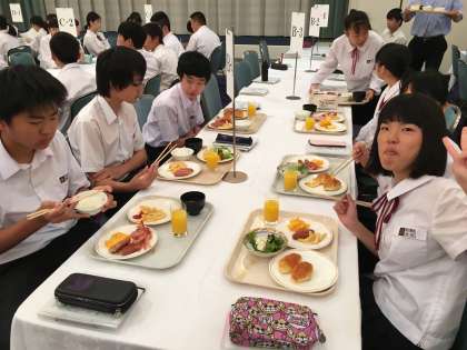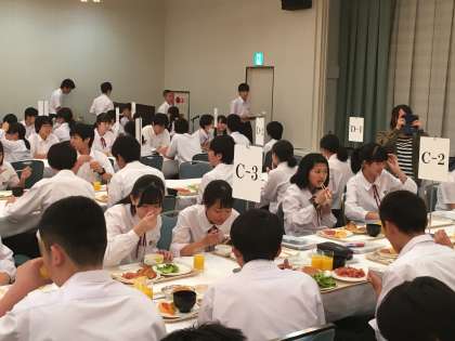 3年B.C組の様子です。野菜をたくさん食べている生徒もいます。