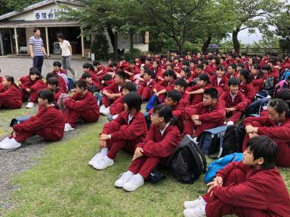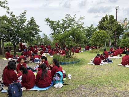 香陵台に着きました。お弁当を仲良く食べています。