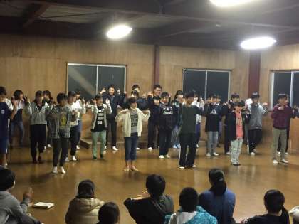 夜のお楽しみ、スタンツ発表会です。各クラスダンスを披露しています。