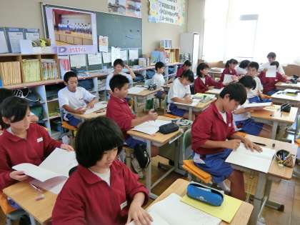 1年D組数学は、学習用のワークシートが配られています。関数の問題に取り組みます。