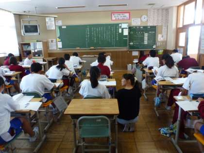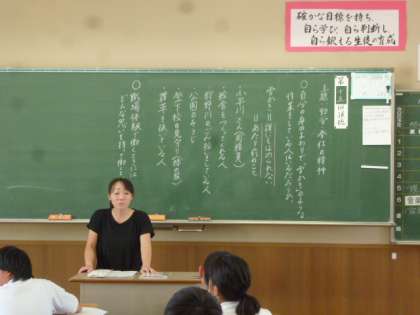 2Eは「勤労・奉仕の精神」を学習していました。身の回りの勤労奉仕をしている人をあげて働くとは・・・を考えていました。