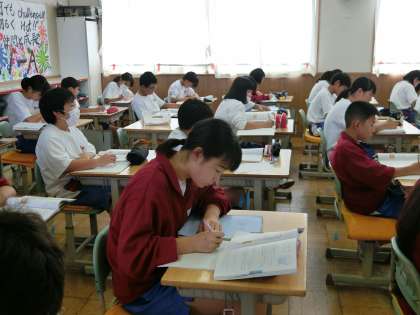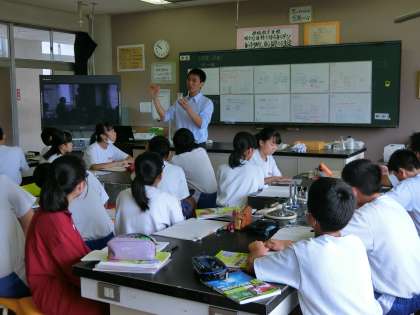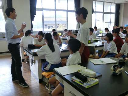 1年B組理科は、実験の結果の考察をしています。江島先生の「なぜだろうか」という質問に、進んで答えています。