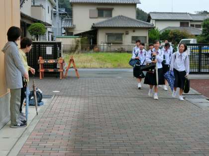 朝の登校では、保護者の皆さんがあいさつ運動に参加していただいています。お忙しい時間帯の参加で、ありがとうございます。