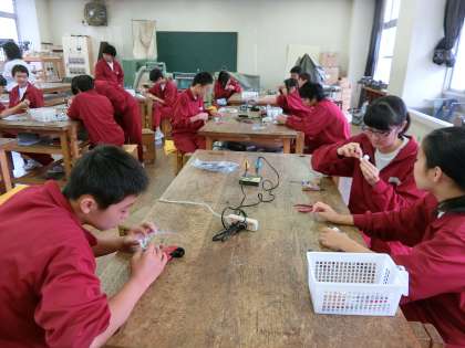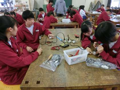 2年D組技術は、ハンダごての実習を行っています。