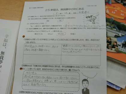 3年E組道徳は、理想の追求をテーマとし、建築家安藤忠雄氏の資料を使って生き方を考えています。ワークシートにも、自分の考えをまとめています。