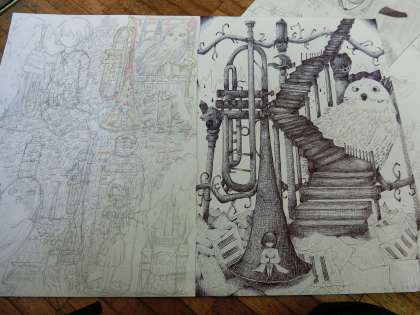 授業作品の紹介 公開日 2018/10/18 更新日 2018/10/18 学校の紹介 3年C組の作品鑑賞の中で、ハッチング仕上げの印象の残る作品を一枚パチリ。岩崎百花さんの作品です。アイデアスケッチから、見事な作品に仕上げています。 3年生になると、どの生徒の作品も素晴らしいです。 いいね(0)