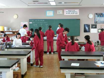 3年E組理科は、酸化銅の電気分解の実感が終わり、片付けているところです。