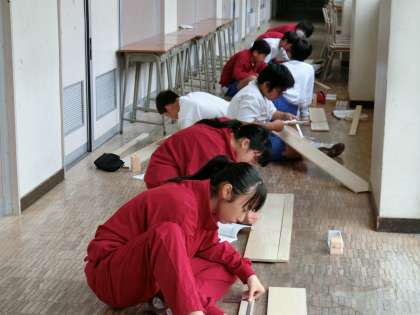 1年B組技術は、模型を作り終わった生徒は、実際に木材を使って模型どおりに型をとっています。