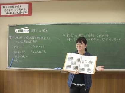 2C道徳:自分の町の宝物でこれからも残していきたいものは何か。なぜそう思うのか。発問に対して、「全部残せばいいのに…」「なぜ残せないんですか」という意見が出ていて、みんなで考えていました。