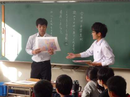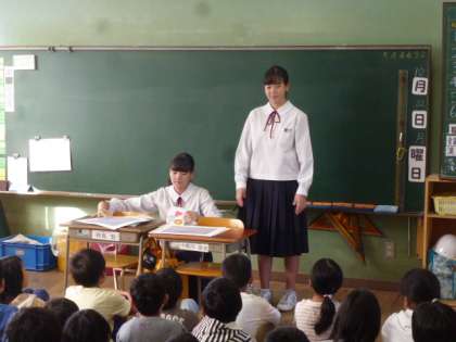 9月には、美術部に作ってもらった絵本をもとに、読み聞かせの練習をしていきました。指さしやジェスチャーなどを工夫して、小学生がお話の概要を理解できる読みの工夫をしていきました。