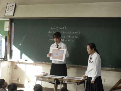 10月には、手作りのしおりを作りました。これは、表面は名前(漢字)、裏面は、小学生の名前(英語・筆記体)で書いてあるものです。小学生に喜んでもらえるように心を込めて作りました。