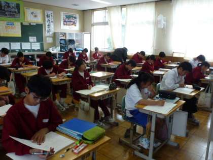 3Bは数学の授業でした。「相似を利用して拡大・縮小する方法を理解する」の授業です。