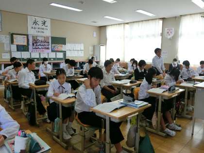 2年D組英語は、プログラム6−3の内容の読み取りを行なっています。積極的に発表しようとしています。