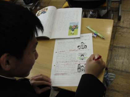 3B道徳:資料を読んだ後、外国人の転校生が、日本の学校へ通い始め、自分が上手にできたことを周りの人にも伝えたとき、「自慢だ」と言われたとしたらどんな気持ちになるか考えてみました。日本人は控えめなので、やはり自慢しているととらえている生徒が多く見られました。