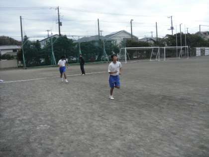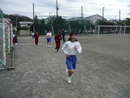 1D保健体育:持久走です。寒い中、一生懸命走っていました。寒さに負けずガンバレ!!