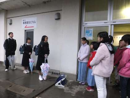 12月12日(水)朝、生徒会本部役員が香貫小、三小に出向いてあいさつ運動を実施しました。あいにくの雨でしたが、生徒のやる気で、気持ちのよいスタートを切ることができました。寒い中お疲れ様でした。