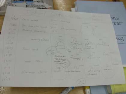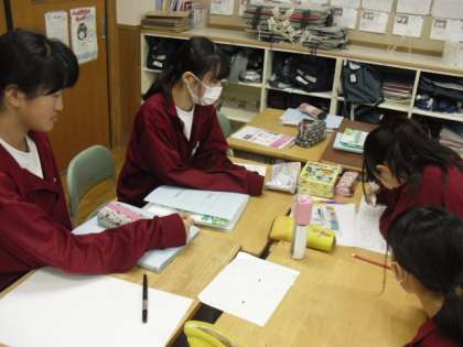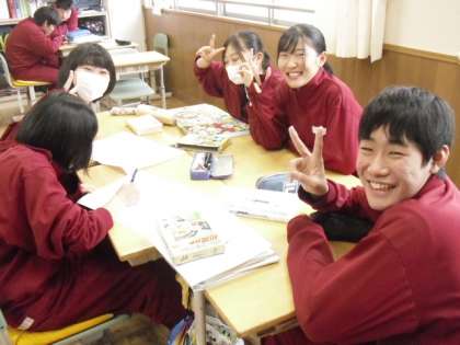 3E英語:小学生へ三中を英語で紹介するためのパンフレットを作成しています。グループで1つ仕上げ、三小・香貫小へ贈呈する予定です。