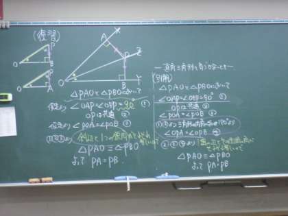 2B数学:直角三角形の性質を利用した証明を行っています。