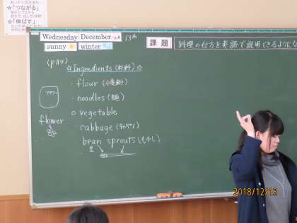 3Eは英語でした。「英語で料理」を進めていました?具材の英単語をクリスに英語で質問しながら料理の手順をオール英語で授業していました。