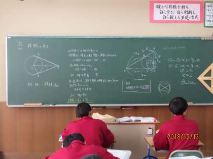 3Fは数学でした。円周角と円の接点のまとめ問題を行っていました。