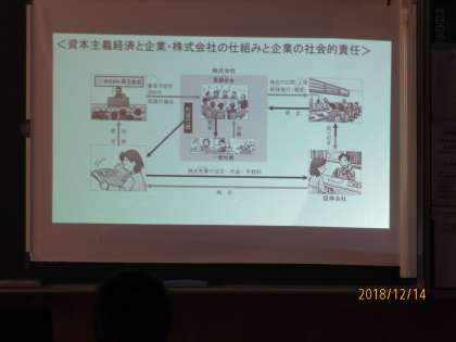3Aは社会の授業です。株式についての学習をしていました。本日の仕組みの説明をしています。