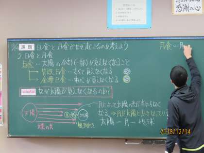 3Eは理科の授業です。月食と日食について学習していました。見る機会の少ない現象だと言うことを理解していました。