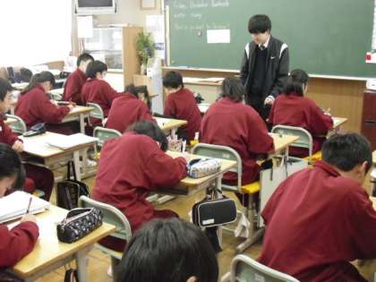 1D英語:前回の授業、ALTのクリス先生の授業の復習を行っています。