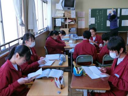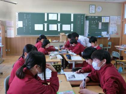 3年A組国語は、古文の物語を協力して,班で読み進めています。