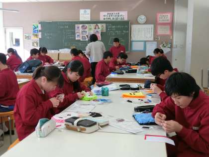 1年C組家庭は、マイクロファイバークリーナーの作成を頑張っています。
