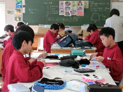 1年C組家庭は、マイクロファイバークリーナーの作成を頑張っています。