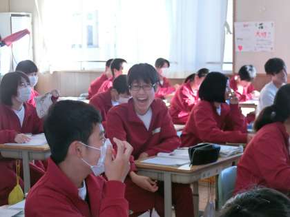 2年E組英語は、プログラム8の内容を、読み解いています。塚本先生の和訳が楽しくて、思わず笑みがこぼれます。