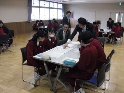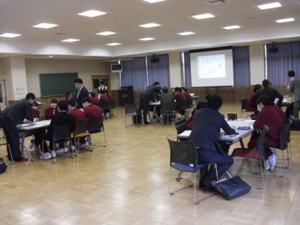 3A社会:SONY生命の方に来校していただき、ライフプランニング授業を実施しました。人生設計の中で、自分の子どもが高校進学した時、公立・私学のどちらに進学するのか、貯蓄をどのように計画的にするのかを考えていました。