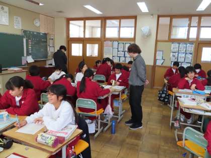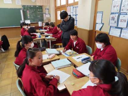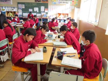 1Dは英語です。自分が思う「クリスマス ドリームを英語で書こう」思い々に英語で書き込んでいます。わからない単語をクリスに聞きながら記入していました。