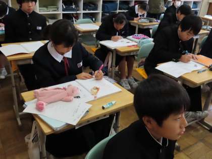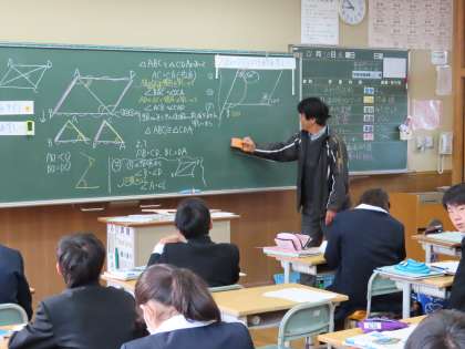 2Bは数学です。平行四辺形の性質を学習中です。たくさんの意見が次から次へと出てきました。