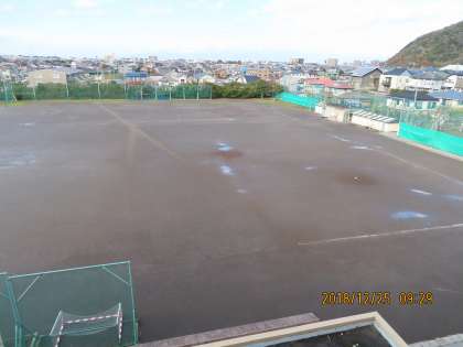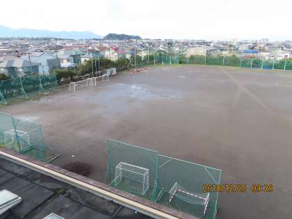 この連休中の雨で、三中のグランドは使えないです。外の部活動は場所を工夫して部活動を行っていました。