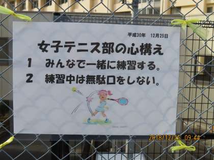テニスコートは雨に負けずに使用することができました。元気にコートで練習をしていました。女子テニス部は、本日から2つの心構えでがんばります。