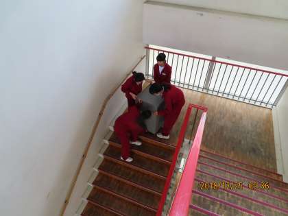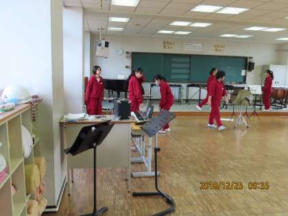 吹奏楽部は音楽室の大掃除をしていました。重いロッカーを3階から2階に下ろしたり、窓を拭いたり床を掃いたり、一年間使用した部屋をきれいにする事ができました。